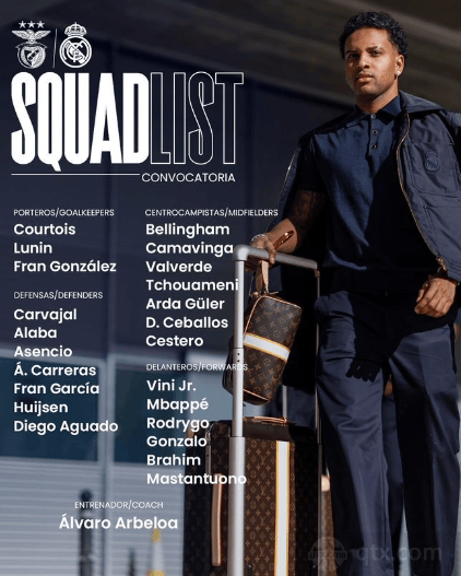 北京时间1月29日4:00,皇家马德里将迎来欧冠联赛阶段的最后一轮比赛,球队将客场挑战本菲卡,这场比赛对于皇家马德里很关键,球队需要力争取胜从而锁定前8名的位置,另外球队目前还有获得积分榜第二名的机会,因此依旧需要全力以赴。目前,皇家马德里已经公布了球队本场比赛的名单。